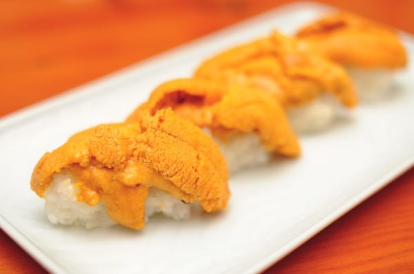 Slightly smaller than the state of California, Japan has more than 18,000 miles of coastline.  Of the many delicacies featured in Japanese cuisine, one in particular can be found off California’s coast near Santa Barbara.  Uni, the reproductive organs of red sea urchins, look like mustard-colored tongues with a smooth, buttery taste. Santa Barbara uni is harvested by divers and sold throughout the state, but the top quality specimens are shipped off to Japan’s fish market in Tokyo.  When choosing uni, look for firm pieces without areas of drying or discoloration.